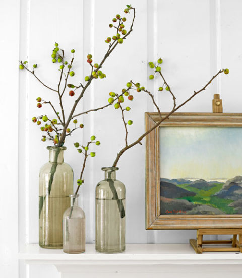 Bạn có thể trang hoàng nhà cửa thêm phần sống động bằng một vài cành táo dại cắm trên bàn hay kệ lò sưởi hay kệ để đồ. Hãy bỏ lá khỏi cành vì điều đó sẽ làm tôn lên những quả táo đẹp mắt.