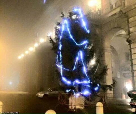 Một cây Giáng sinh lấp lánh nhưng hình dáng kỳ cục ở Ý