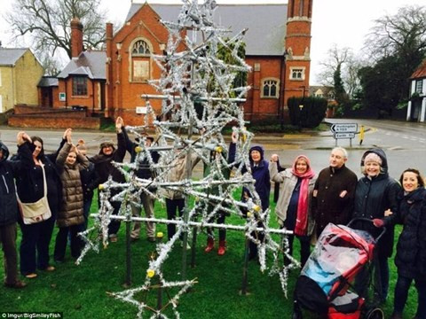 Người dân ở Haddenham, Cambridge, Anh có vẻ rất háo hức với sản phẩm cây thông Noel được tạo nên từ những ngôi sao.