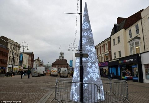 Cây thông cao chót vót ở giữa đường Stockton-on-Tees, Anh