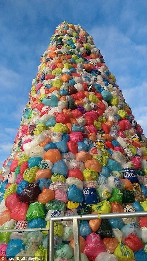 Cây thông được làm từ các túi nilong, là sản phẩm của người dân Mier, Stoke-On-Trent, Anh