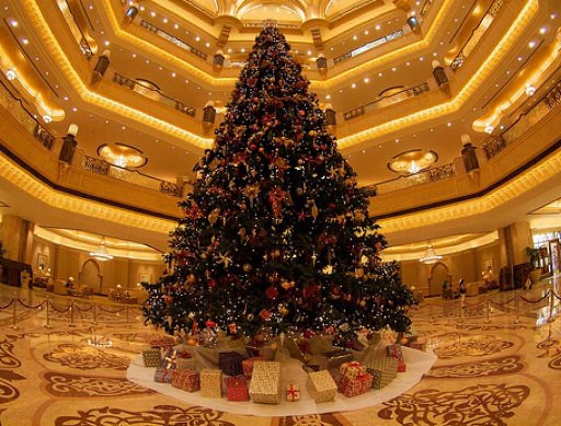 Cây thông Noel Abu Dhabi sẽ khiến ngày Giáng sinh của bạn trở nên sang trọng hơn bao giờ hết. Đó là một cây thông Noel đắt tiền nhất thế giới được đặt ở Abu Dhabi với giá 11 triệu đôla. Cây cao gần 13 mét, được tô điểm với 181 đồ trang trí bằng kim cương, đá quý và những hộp quà gói bằng giấy vàng đặt ở gốc cây.
