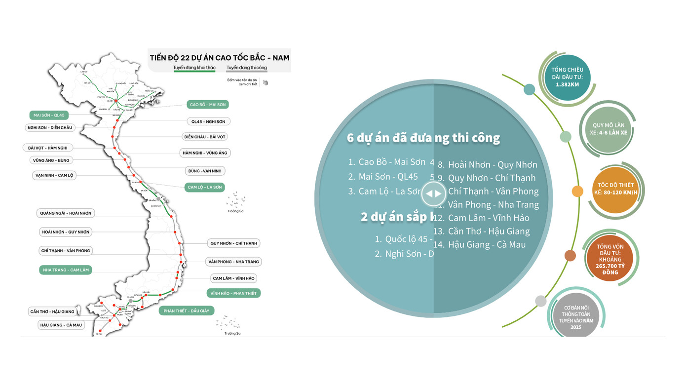 Hiện tại, các dự án đang trong quá trình triển khai thi công. Theo lộ trình, 12 dự án thành phần này sẽ cơ bản hoàn thành năm 2025 và đưa vào khai thác, vận hành từ năm 2026.