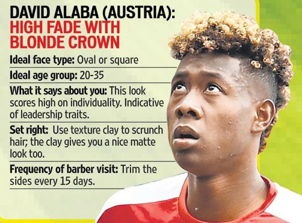 David Alaba đã biến tấu kiểu tóc High Fade với những lọn xoăn được nhuộm vàng trên đỉnh đầu. Kiểu tóc này khiến tuyển thủ Áo vô cùng nổi bật trên sân cỏ.