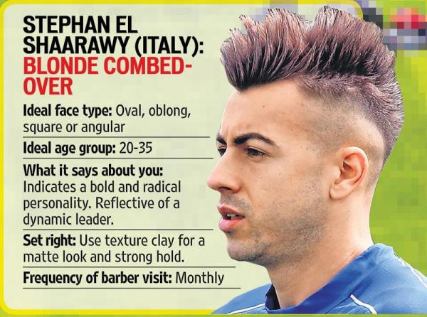 Stephan El Shaarawy chưa bao giờ ưa thích sự giản đơn. Kiểu tóc hất Combed over đã được anh chàng này biến tấu trở nên cá tính. Nhìn qua, tóc của anh hao hao kiểu Mohawk.