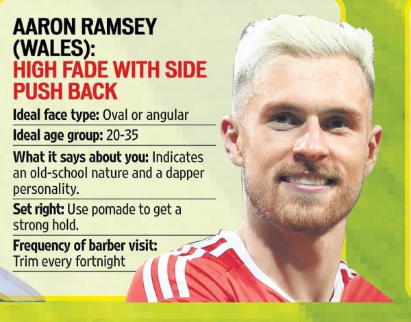Tóc High Fade với một bên được chải ngược phía sau: Kiểu tóc này lần đầu tiên được Ramsey trình làng tại EURO. Cầu thủ xứ Wales cũng gây ấn tượng bằng việc nhuộm màu bạc mái tóc của mình.