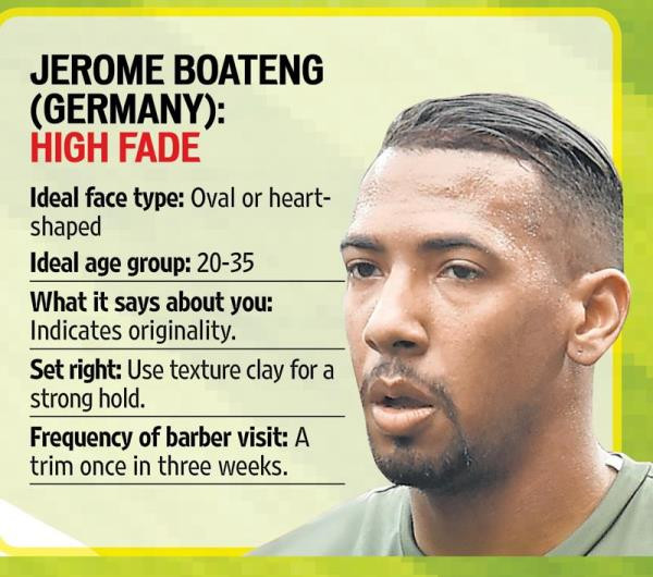 Tóc High Fade là kiểu ưa thích của Jerome Boateng. Với kiểu tóc này, tóc sẽ được cạo ở bất cứ vị trí nào nằm trong khoảng 5cm phía dưới đỉnh đầu, thậm chí là thấp hơn.