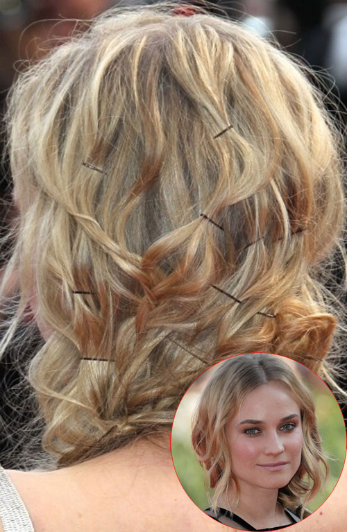 Nữ diễn viên, người mẫu Đức Diane Kruger là một trong những cô nàng mê style tạo kiểu tóc bằng kẹp tăm. Khi làm tóc xoăn rối, mỹ nhân ghim tóc theo kỹ thuật phân đoạn để tạo điểm nhấn tinh tế.