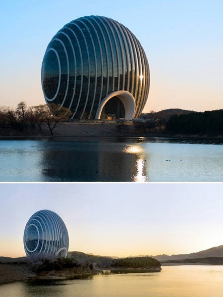 Nằm trên mép hồ cách Bắc Kinh 60 km, khách sạn Sunrise Kempinski là một tòa nhà đậm chất phong thủy. Công trình này thể hiện hình ảnh mặt trời mọc, biểu hiện sự hài hòa, thống nhất và trường tồn. Nhìn từ bên cạnh, khách sạn có hình dáng giống một con sò, tượng trưng cho may mắn trong văn hóa Trung Quốc.