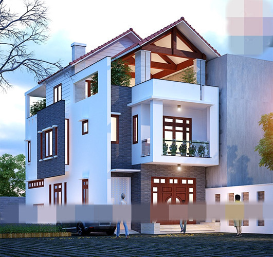 Nhà phố 3 tầng có gác lửng kiến trúc tân cổ điển sang trọng, bề thế.
