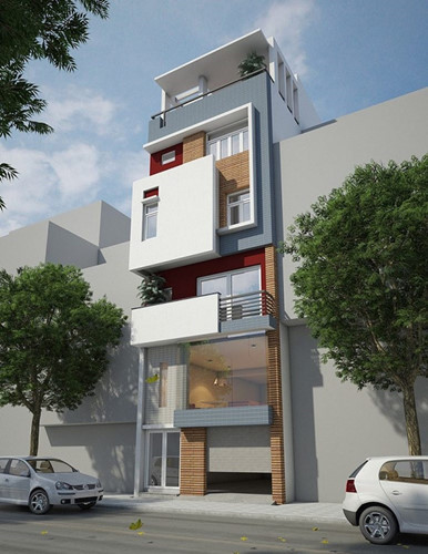 Bằng cách phối thêm sơn màu đỏ ở các chi tiết phụ một cách tinh tế, căn nhà trở nên nổi bật giữa khu phố.