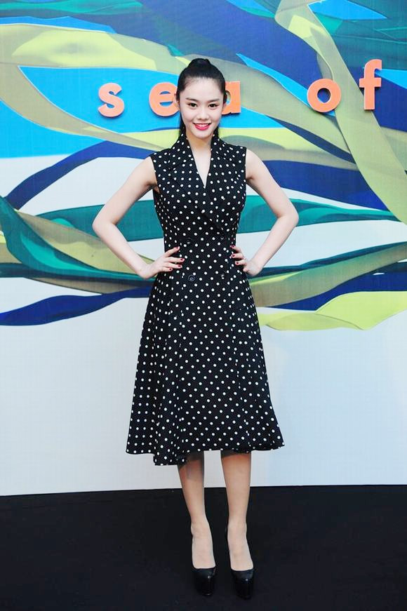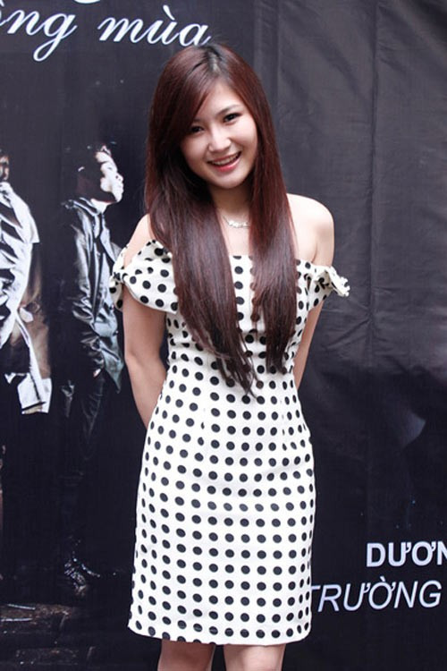 Các nốt chấm bi được thiết kế thoáng mắt tạo vẻ đáng yêu cho người mặc, đây là lựa chọn rất phù hợp với vóc dáng của Thu Hằng.