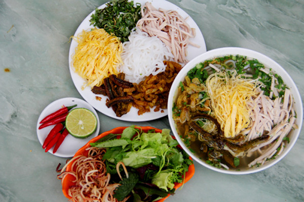 Khác với Hà Nội, bún thang của người Hưng Yên còn có thêm lươn rất lạ miệng. Ảnh: hungyentourism.