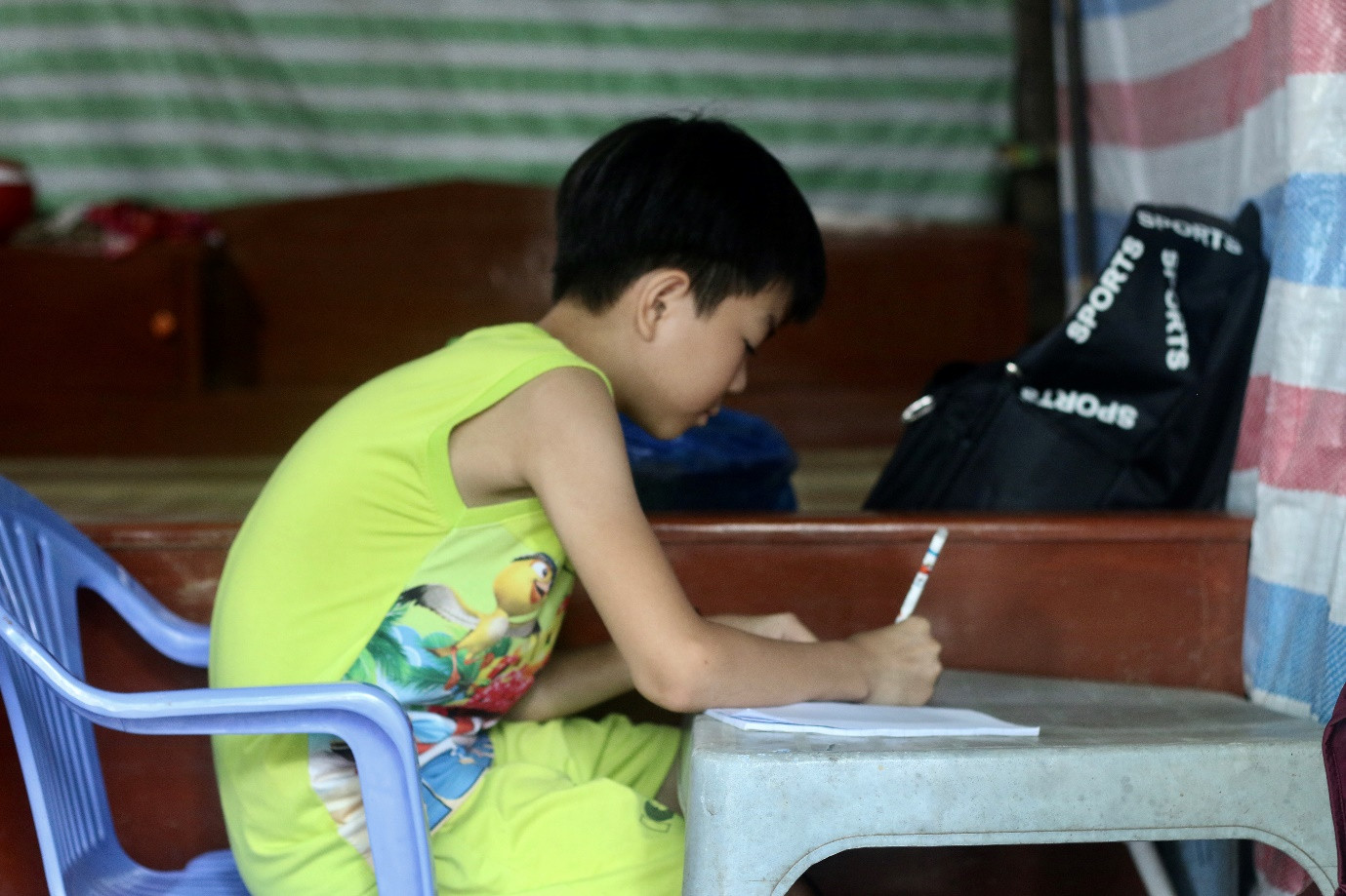 “Dưới thì nước sống, trên thì mưa đổ xuống, nhiều đêm viết chữ nào mưa ướt chữ đó, thằng bé chỉ biết khóc” - anh Nam kể.