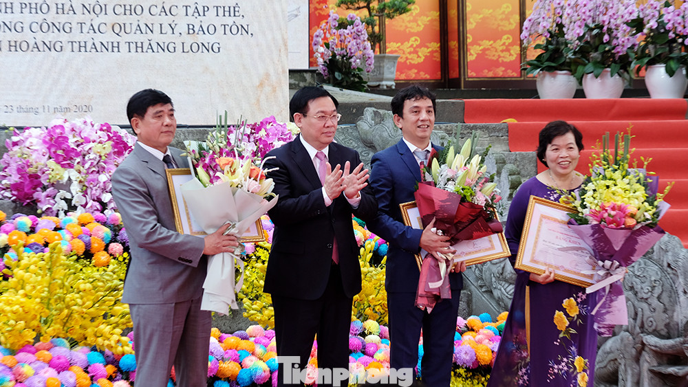 Bí thư Thành ủy Thành phố Hà Nội Vương Đình Huệ trao bằng khen UBND thành phố Hà Nội cho các tập thể và cá nhân có thành tích trong công tác quản lý, bảo tồn, phát huy giá trị Di sản Hoàng thành Thăng Long.