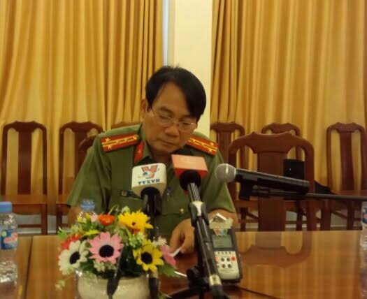 Đại tá Lê Văn Việt - Giám đốc Công an tỉnh Trà Vinh, tại buổi họp báo.