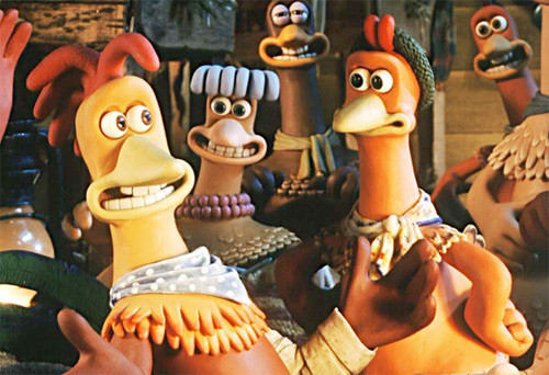 Bộ phim Chicken Run (Phi đội gà bay) kể về một đàn gà tìm cách trốn thoát khỏi trang trại chăn nuôi do ông Tweedy và bà vợ độc đoán của ông ta trông coi, trước khi họ biến chúng thành nhân bánh bao.