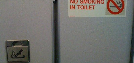 Nhà vệ sinh trên máy bay được thiết kế để mở khóa từ bên ngoài. Thông thường, khóa này có thể nằm sau biển cấm hút thuốc trên cửa máy bay. Nó cho phép tiếp viên mở cửa nhà vệ sinh trong trường hợp cần thiết.