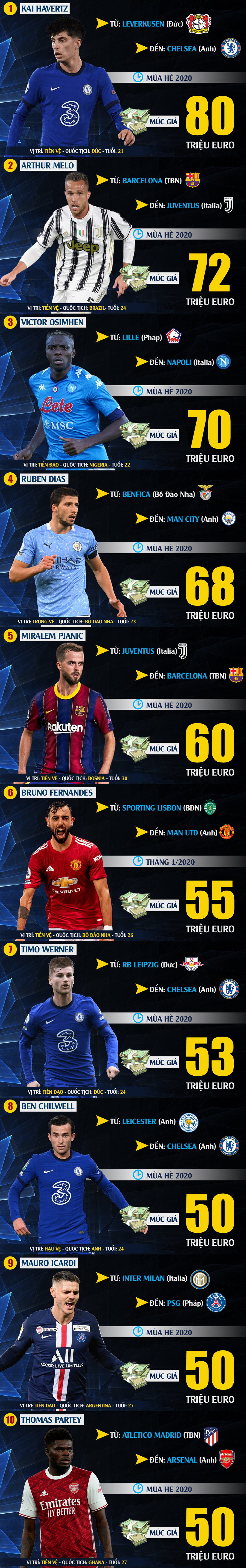 10 thương vụ chuyển nhượng ‘khủng’ nhất năm 2020