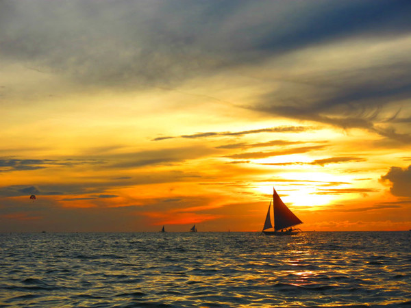 Paraw là một thuyền buồm truyền thống của người dân Philippines. Nếu bạn đến Boracay, một trong những điều bạn nên làm là trải nghiệm cảm giác giong thuyền buồm Paraw trên đảo ở đây. Ngoài việc khám phá văn hóa truyền thống của người dân vùng biển thì chuyến đi này là một trải nghiệm vô cùng thú vị. Theo kinh nghiệm của nhiều người, thời gian tuyệt vời nhất để bạn đi thuyền Paraw là vào buổi chiều. Giong thuyền ra ngoài khơi xa, bạn sẽ được nhìn ngắm toàn bộ bờ biển Boracay tuyệt đẹp. Khi mặt trời bắt đầu lặn, ánh nắng cuối ngày len qua những đám mây xám để vẽ lên bàu trời một màu cam ấm áp.