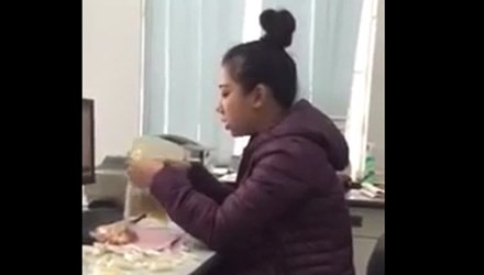 Cô gái có giọng hát giống Lệ Quyên. Ảnh cắt từ video.