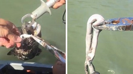 Kỳ lạ, rắn đốm đen cực độc sống kí sinh trong miệng cá (XEM VIDEO)
