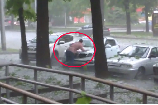 Cô gái lấy thân mình che ôtô trước trận mưa đá (XEM VIDEO)