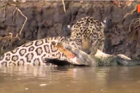 Báo đốm dũng mãnh lao xuống sông hạ gục 'sát thủ đầm lầy' (XEM VIDEO)