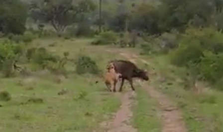 Trâu rừng dũng cảm tấn công sư tử để cứu bạn (XEM VIDEO)