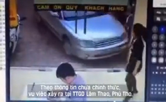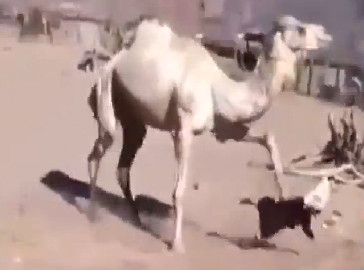 Em bé bất ngờ bị lạc đà đá ngã sấp xuống đường (XEM VIDEO)