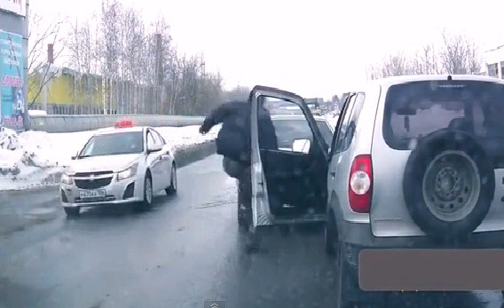Tung cước vào đuôi xe khác vì mãi không chịu rẽ.