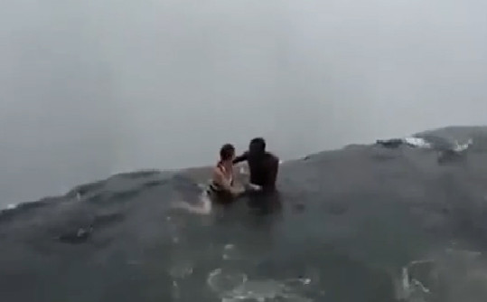 Nhóm thanh niên liều lĩnh tắm ở đỉnh thác (XEM VIDEO)