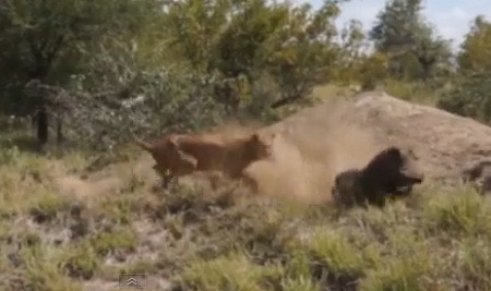 Giây phút lợn rừng đào thoát ngoạn mục trước bầy sư tử (XEM VIDEO)