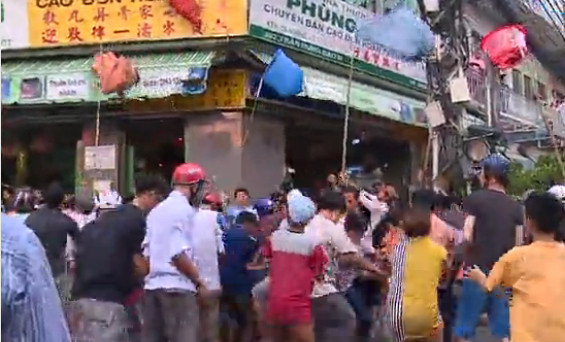 Hàng trăm người giành giật đồ cúng trên đường phố Sài Gòn (XEM CLIP)