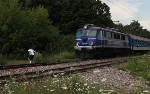 Nam thanh niên liều mạng nhảy 'cắt mặt' tàu hỏa đang lao tới (XEM CLIP)