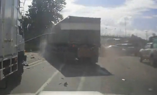 Container mất lái ủi bay hàng loạt ô tô trên quốc lộ (XEM CLIP)