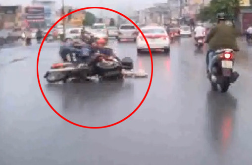 Tai nạn xe máy trong trời mưa. Ảnh cắt từ video.