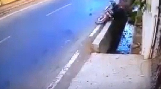 Xe lam quay đầu hất người đi xe máy xuống cống (XEM VIDEO)