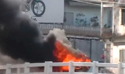 Clip xe ô tô 7 chỗ cháy ngùn ngụt giữa cầu (XEM VIDEO)