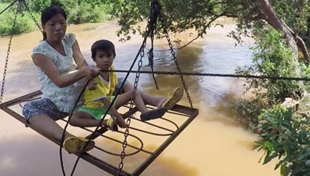 Thót tim cảnh bà bầu đu dây qua sông ở Gia Lai (XEM VIDEO)