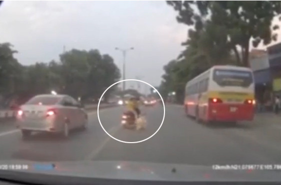 Con trai văng xuống đường vì mẹ đi xe máy tạt đầu ôtô (XEM VIDEO)