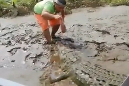 Thất kinh xem người đàn ông 'câu' cá sấu bằng miệng (XEM VIDEO)