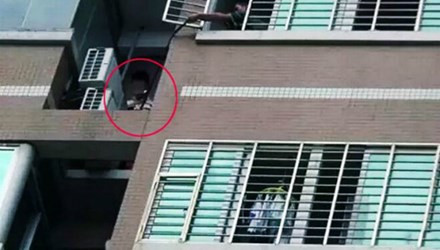 Đứng cả đêm trên gờ tường tầng 7 để trốn chồng người tình (XEM VIDEO)
