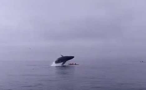 Cá voi 40 tấn bổ nhào vào 2 người chèo thuyền Kayak (XEM VIDEO)
