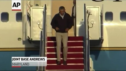 Tổng thống Mỹ suýt ngã khi đi từ trên chuyên cơ xuống.