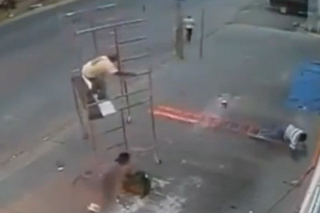Nam công nhân thoát nạn khi rơi từ thang cao 10m (XEM VIDEO)
