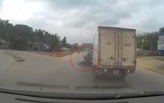 Ô tô tải phanh cháy đường, hai người đi xe máy thoát chết (XEM VIDEO)