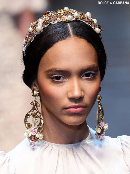 Hãy tạo điểm nhấn cho vùng mắt, má với phấn trang điểm sắc ánh vàng lấp lánh. Bạn có thể chỉ kẻ một đường màu vàng trên mi mắt hoặc phủ lên toàn bộ bóng mắt. Màu ánh vàng kim loại còn tạo hiệu ứng bắt sáng cho gương mặt khi được tán đều lên hai gò má.