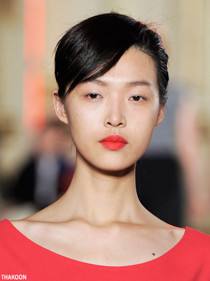 Mùa thu năm nay thế chỗ cho màu đỏ ngọt ngào quyến rũ chính là gam màu đỏ đậm bí ẩn. Khi tô son màu này bạn cũng nên chọn màu phấn má có tone màu ấm áp như màu nâu đồng chẳng hạn.