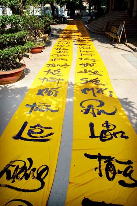 Đây cũng là câu đối được xem có nội dung dài nhất, phá kỷ lục của câu đối trước đó (dài 30m, rộng 2,4m) do nghệ nhân Trần Quốc Ẩn thực hiện vào ngày 14/4/2005.
